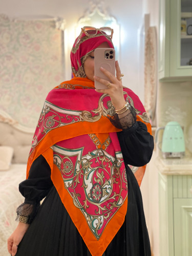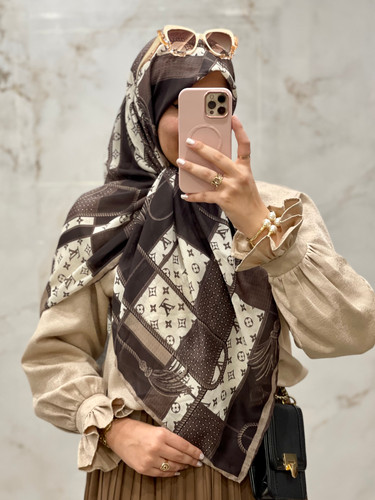 روسری ابریشم ژاکارد لمه دار طرح شن!ل