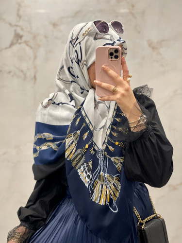 روسری نخ پنبه زنجیری سورمه ایناموجود