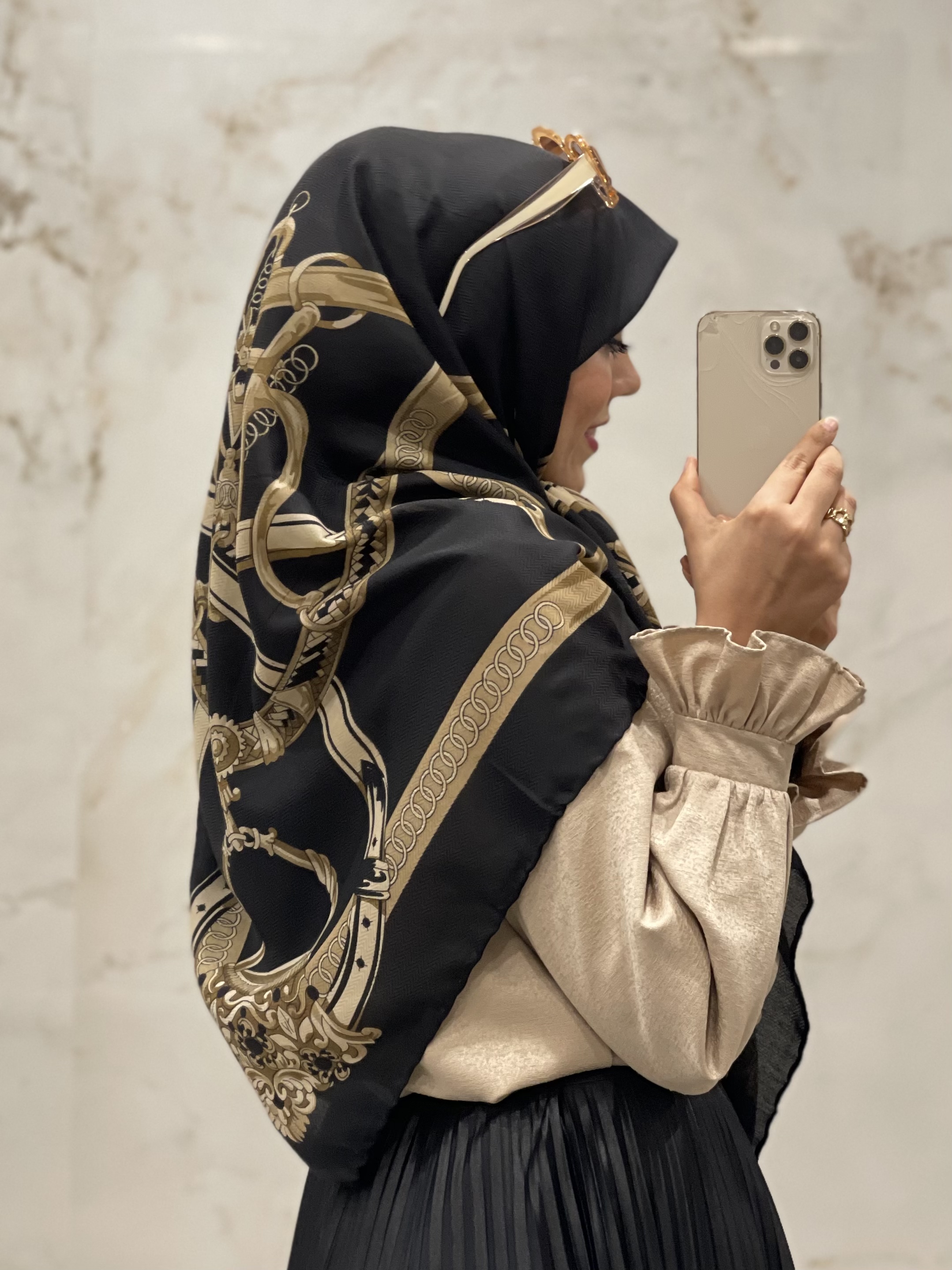 جزئیات : ایستایی عالی/جلوی روسری خوب می ایسته/چروک نمیشه/دور دست دوز