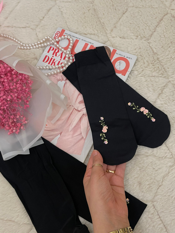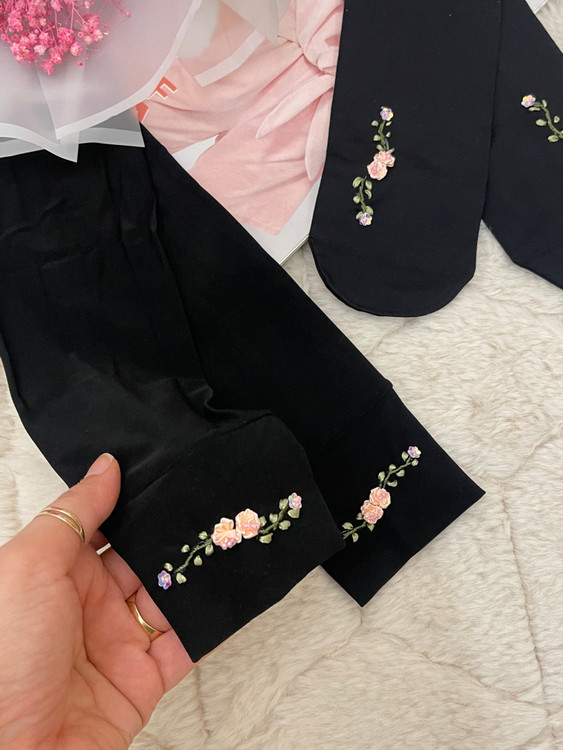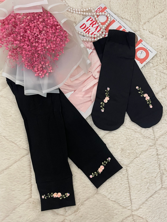 ست جوراب و ساق دست روبان دوزی گل صورتی