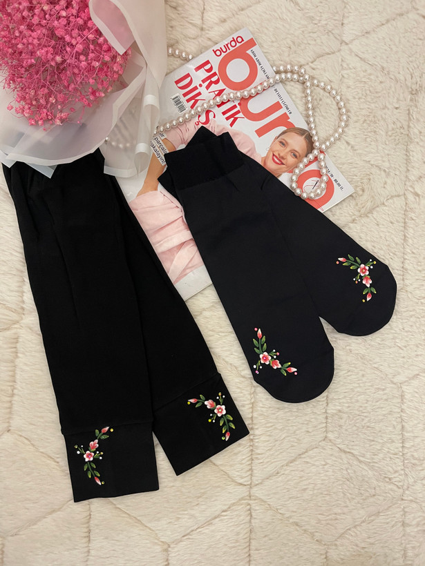 ست جوراب و ساق دست نقاشی شده و نگین دار طرح گیسو