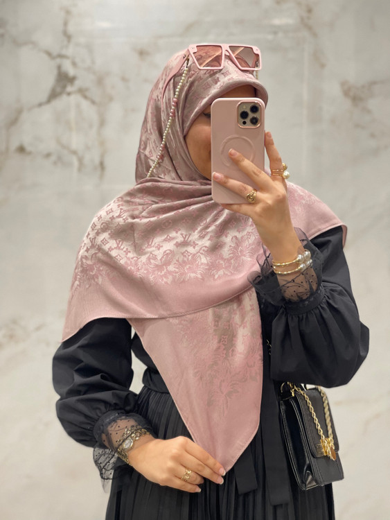 روسری ابریشم ژاکارد لمه دار کد ۵۰۱