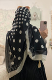 جزئیات : چروک نمیشه/ایستایی خوبی داره/منگوله داره/دور دوخت هست/چند تا لک کوچیک داره که نمونه عکاسی شده و گذاشتیم
