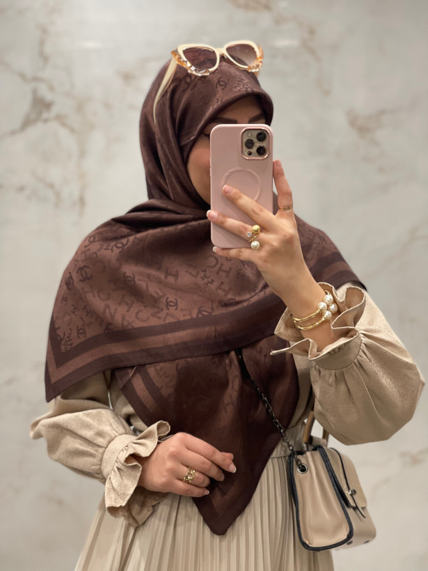 روسری ابریشم ژاکارد لمه دار طرح ش!نل
