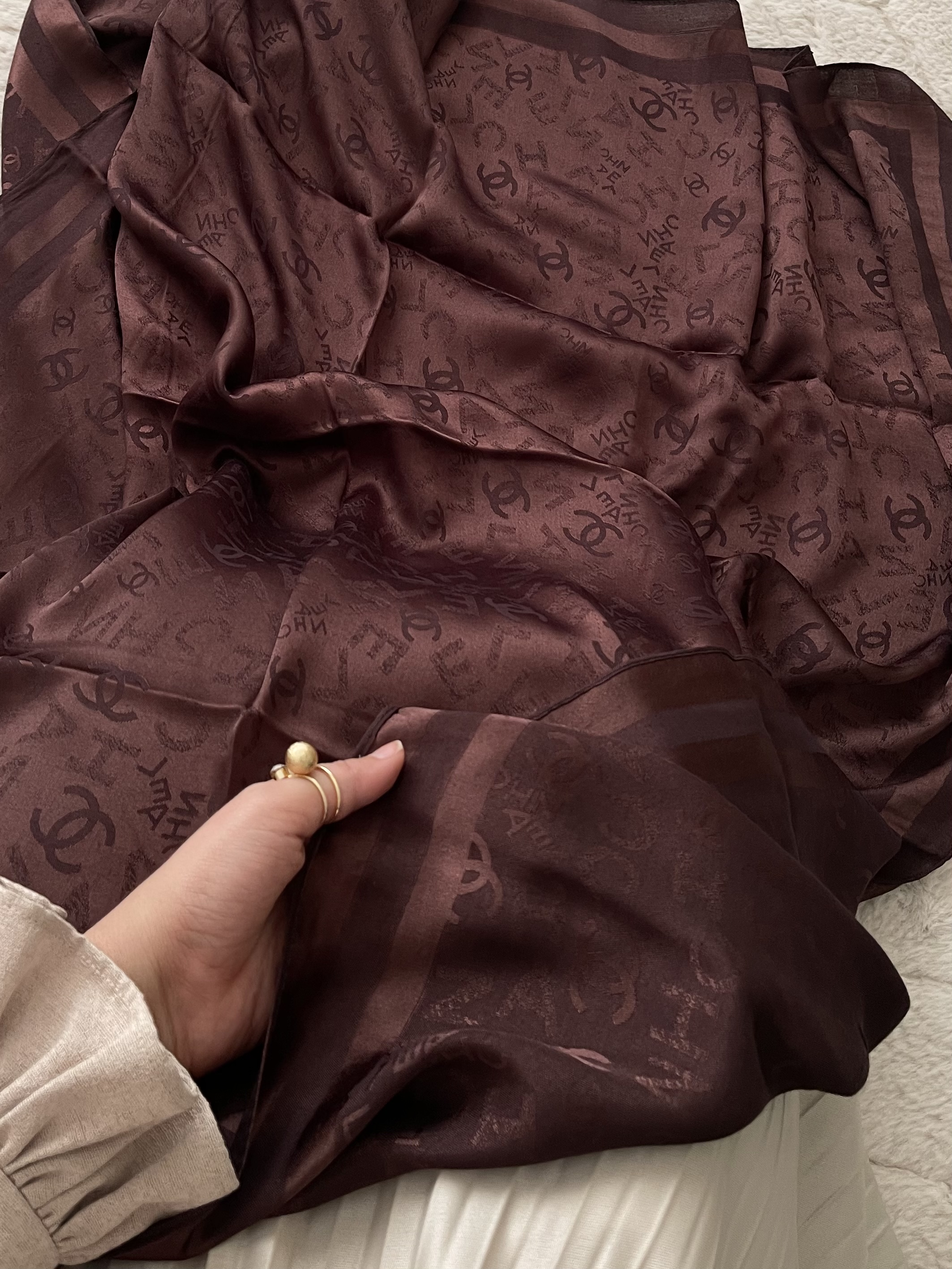 روسری ابریشم ژاکارد لمه دار طرح ش!نل