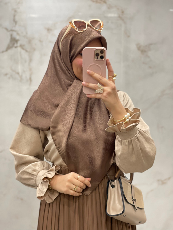 روسری ابریشم ژاکارد لمه دار طرح موج ۱۴۲