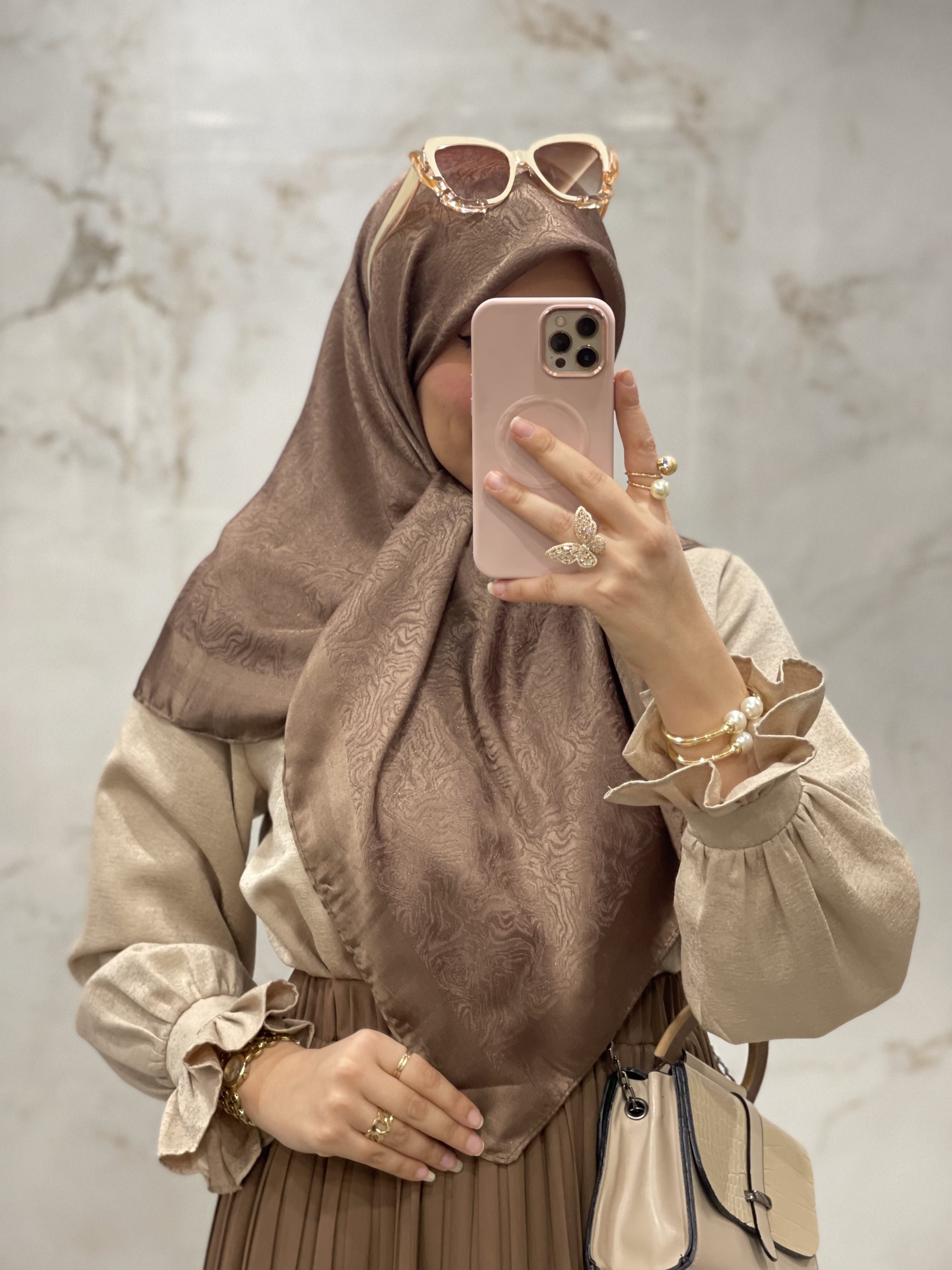 روسری ابریشم ژاکارد لمه دار طرح موج ۱۴۲