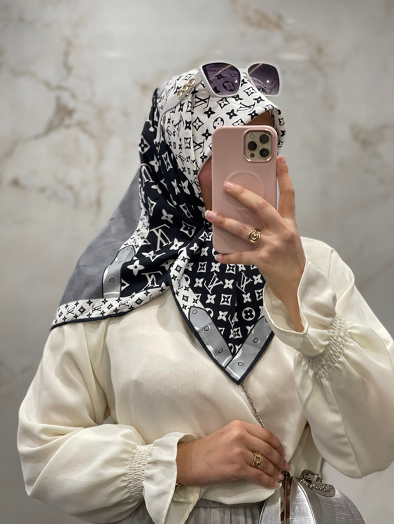 روسری ابریشم کجراه مجلسی وارداتی طرح ال وی