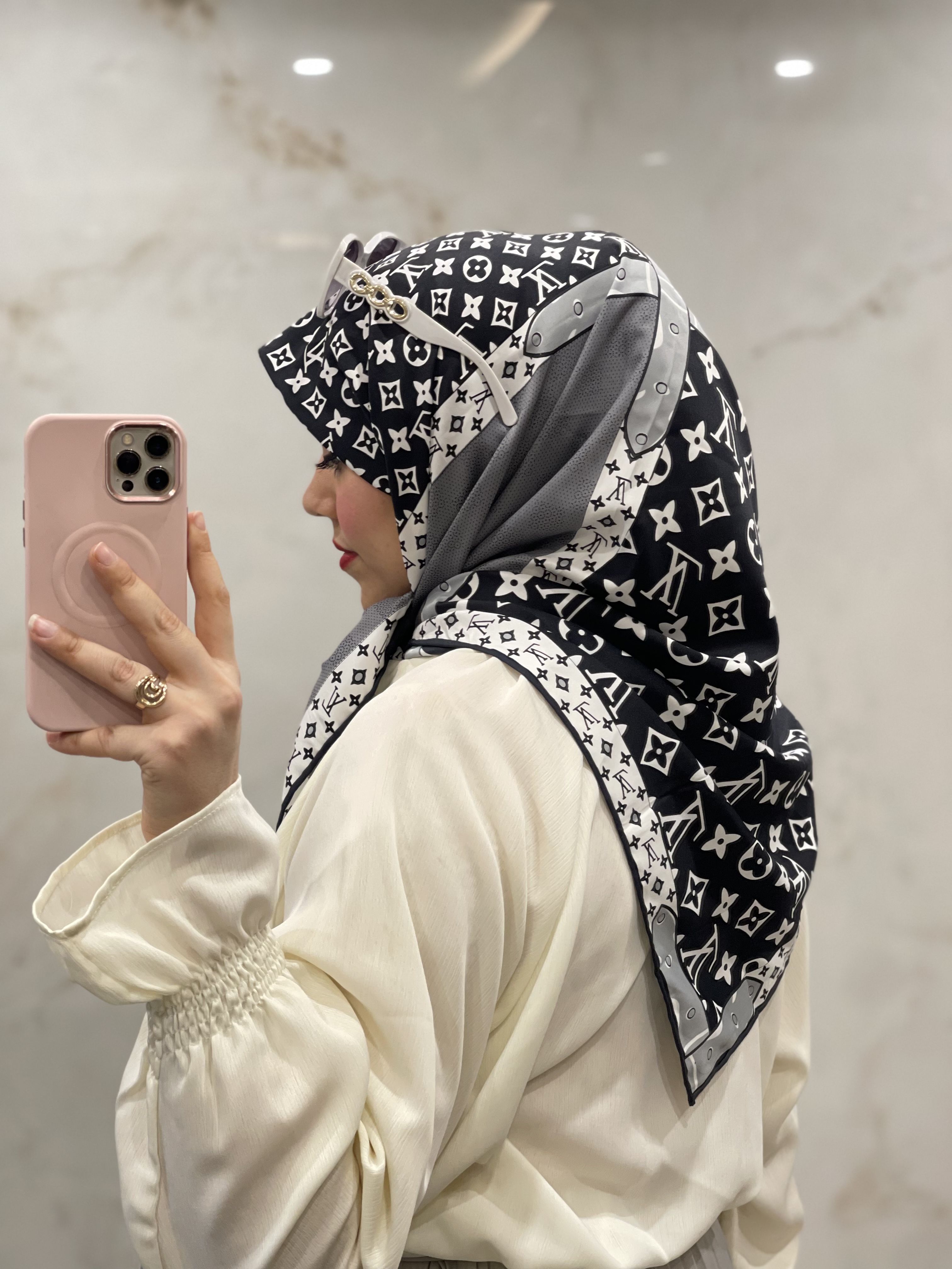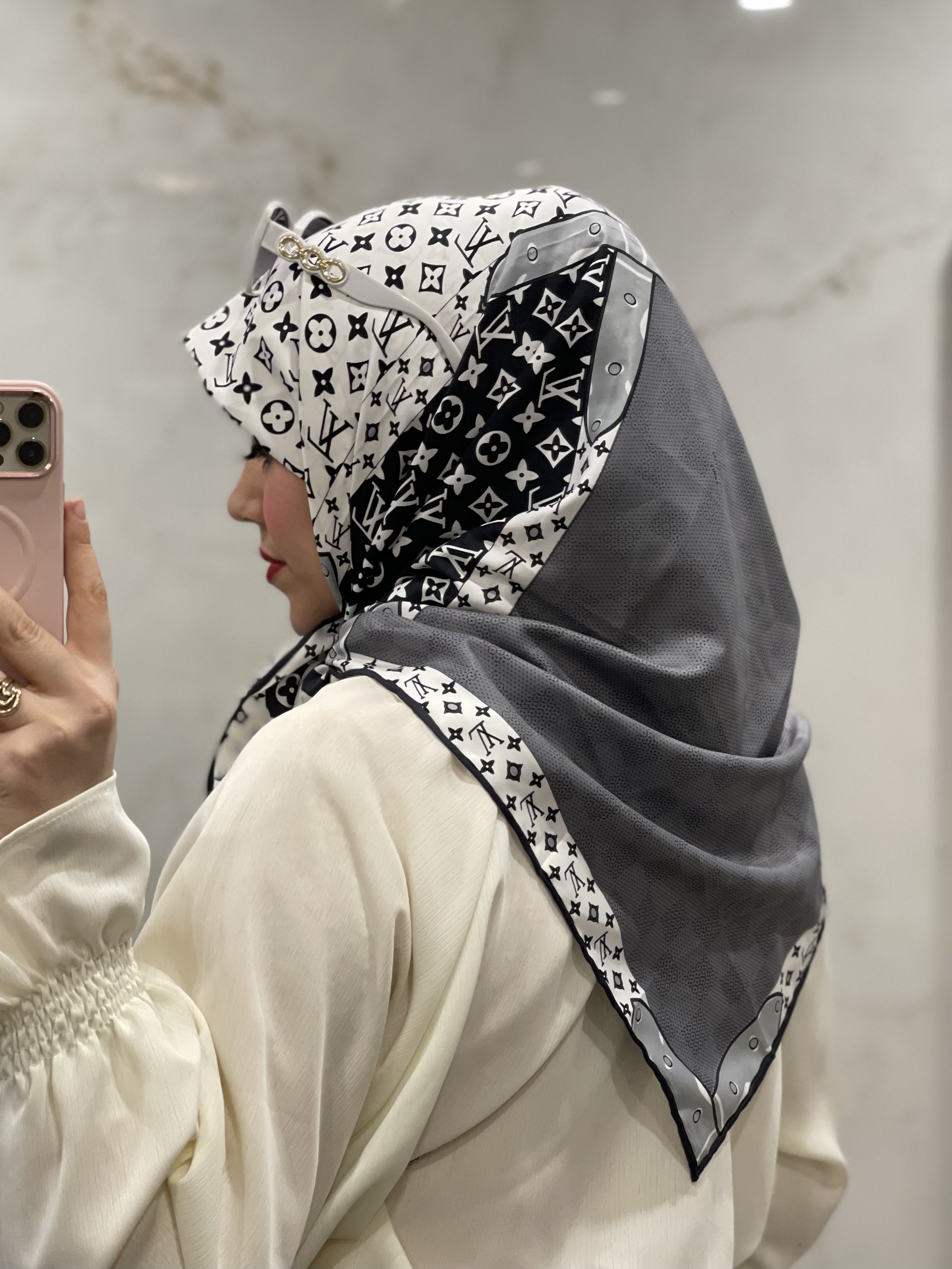 روسری ابریشم کجراه مجلسی وارداتی طرح ال وی