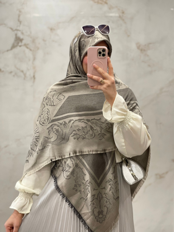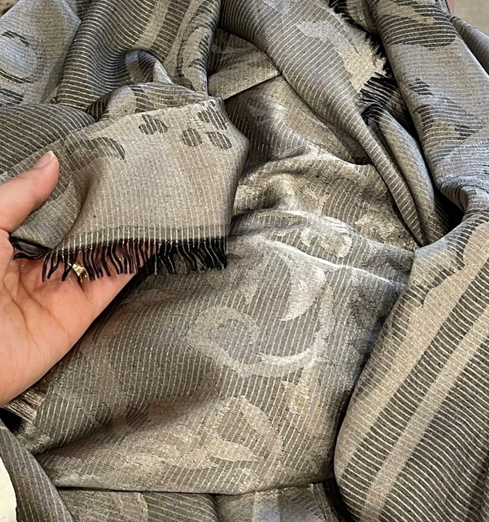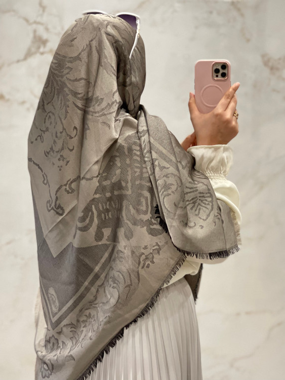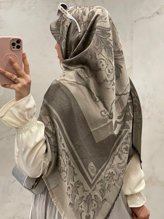 روسری ابریشم ژاکارد لمه دار طرح سلطنتی کد ۱۶۶