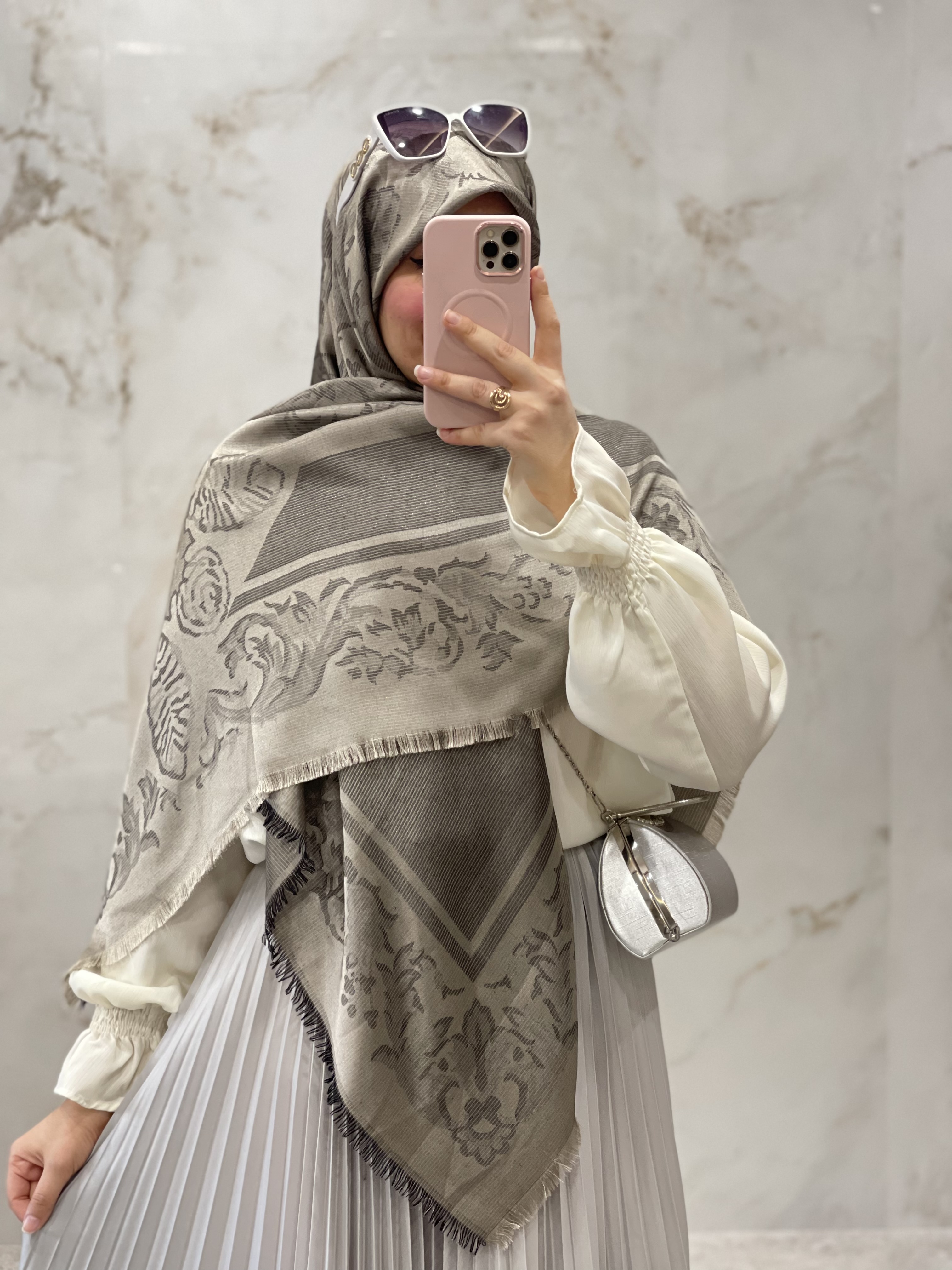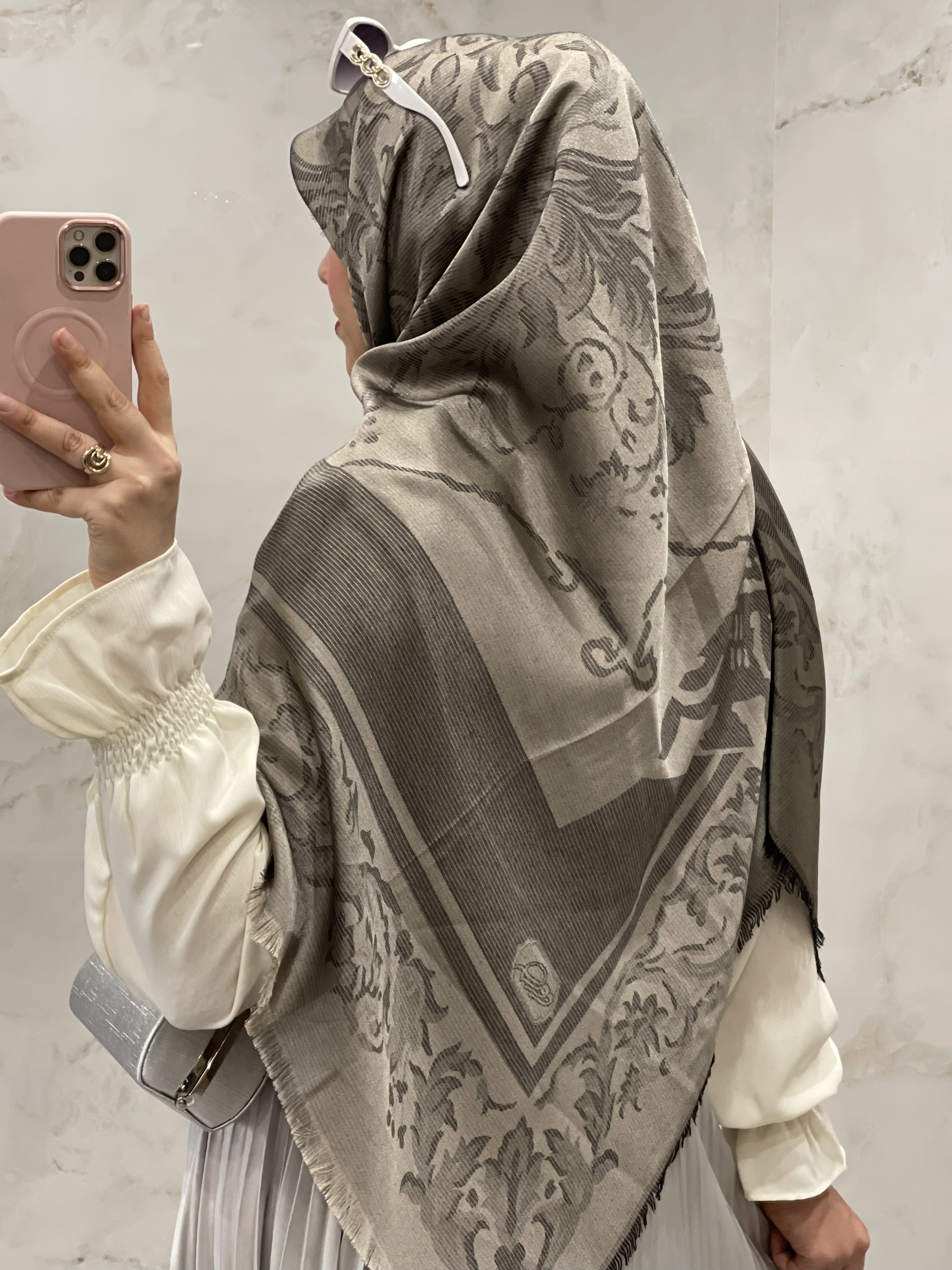 روسری ابریشم ژاکارد لمه دار طرح سلطنتی کد ۱۶۶