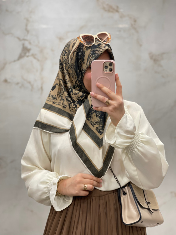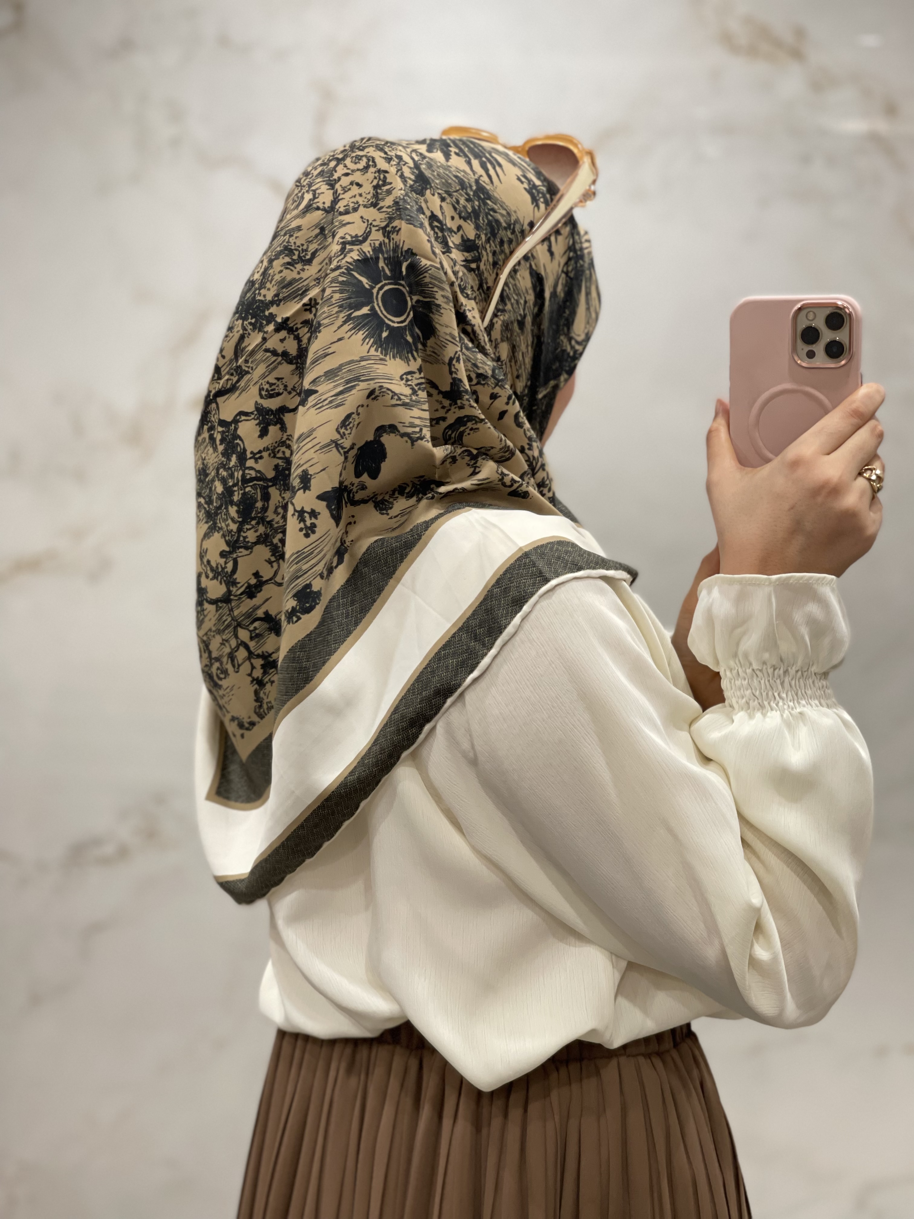 جزئیات: اصلا چروک نمیشه،دور دست دوز هست،پشت سفید نیست اصلا،با گره یا گیره فیکس میشه،روسری ایراد ریز داره که عکاسی شده و عکسش گذاشته شده