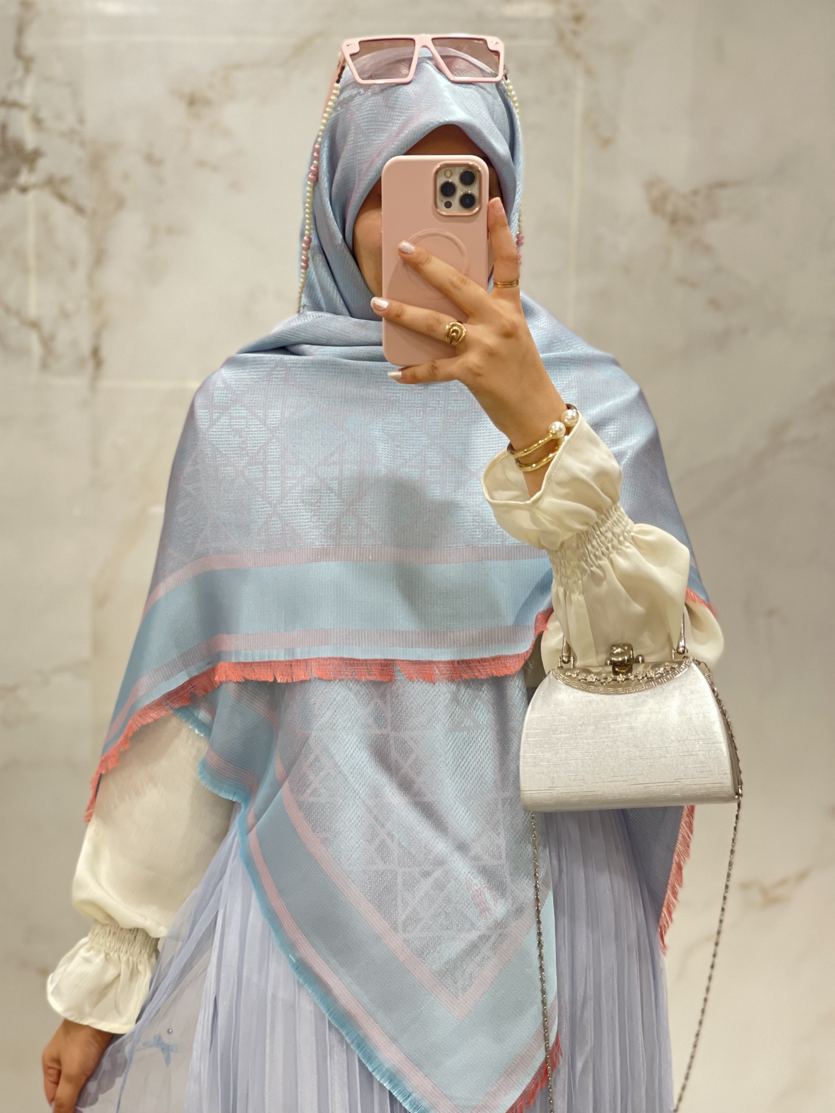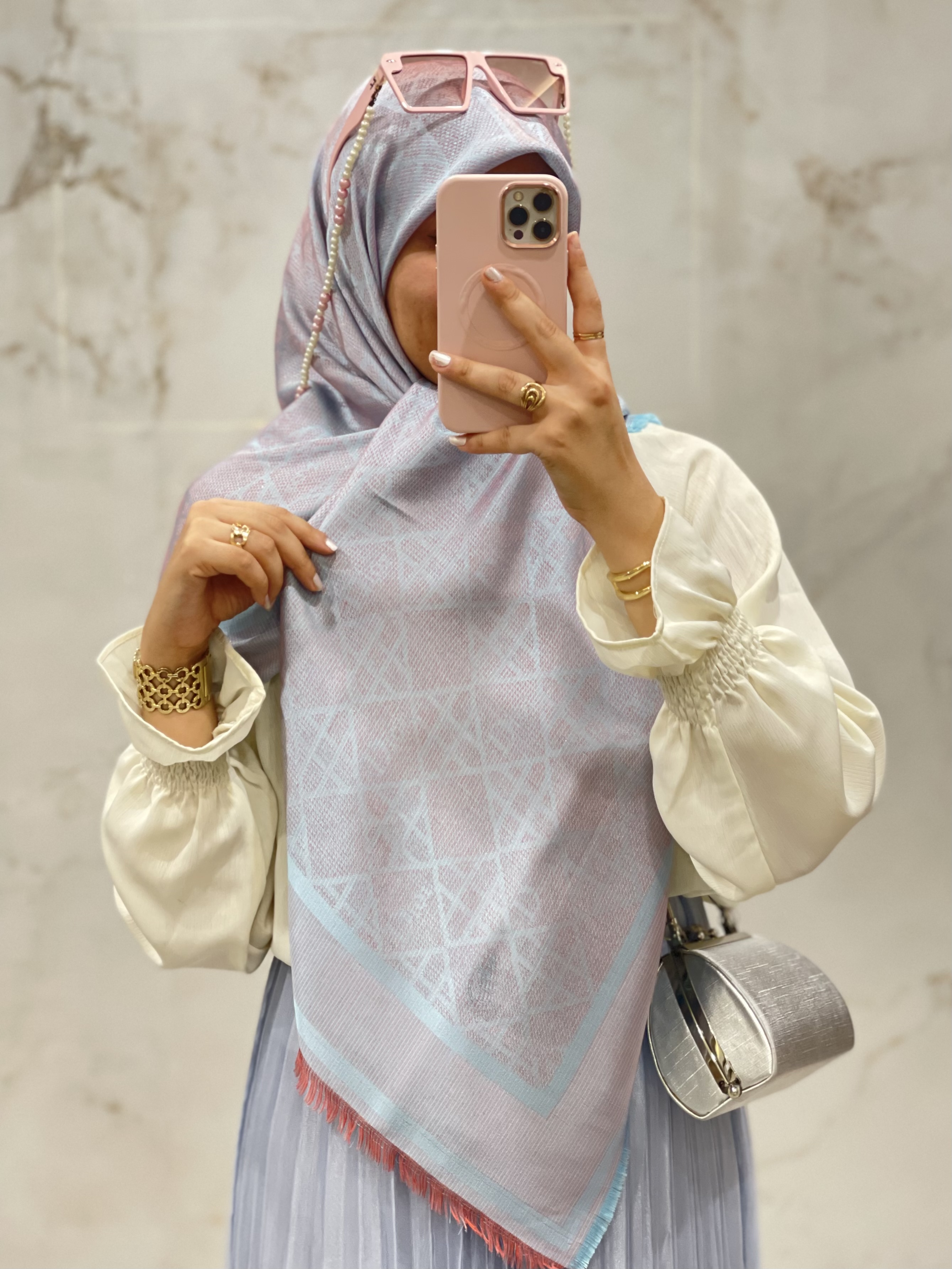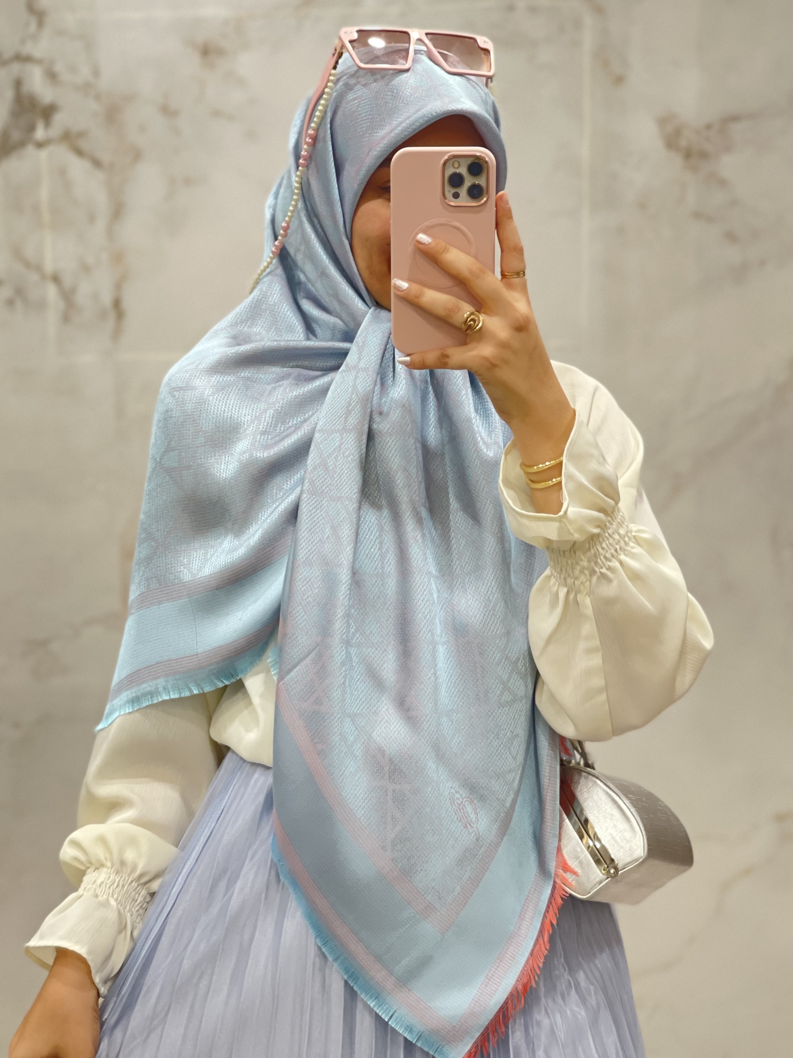روسری ابریشم ژاکارد لمه دار طرح دیور