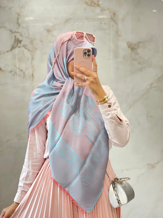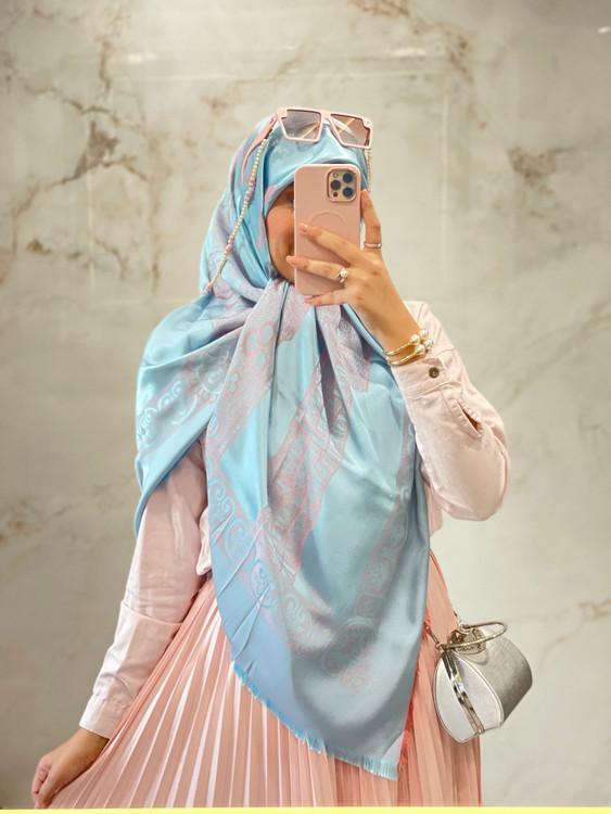 جزئیات: اینکار دو رو و دو طرفه هست(عکس هر دو سمت روسری گذاشته شده)/پرز و دون دون نمیشه/به راحتی چروک نمیشه/ایستایی خیلی خوبی داره/اصلا لیز نیست